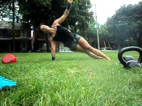 The side plank is a static exercise used to strengthen the abdominals, back and shoulders. Compared to a plank on both hands or forearms, the side plank places more of the load on the oblique muscles. You will feel the obliques (side of your stomach) closest to the ground firing to lift the hips and fight the gravity that is trying to force your body toward the ground. This is one benefit of combining side planks with other variations of planks such as mountain climbers and marching planks (as shown in the video) – not to mention the development of strong shoulder stabilizers. Training these movements together will create BALANCE in your abdominal and lower back muscles